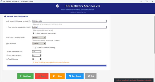 The PQC Network Scanner is a purpose‑built assessment tool designed to help organisations understand their cryptographic exposure as they transition toward a post‑quantum security posture. Unlike traditional TLS scanners that focus solely on certificate validity or classical cryptographic strength, this scanner evaluates endpoints through a quantum‑aware lens. It inspects not only RSA and elliptic‑curve keys but also identifies emerging post‑quantum algorithms, hybrid deployments and experimental PQC indicators embedded within certificates, extensions and cipher suites. This makes it uniquely suited for environments preparing for the cryptographic shift driven by NIST’s PQC standardisation and the growing threat of “harvest now, decrypt later” adversaries.