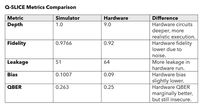 It also computes reproducible Q-SLICE metrics (depth, fidelity, leakage, bias, QBER). It enables organisations, researchers, and security leaders to: